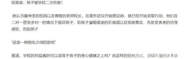 时分,林宁瑞和郝劭文曾前去学校与本分、校长等东说念主交涉处理此事,但三次约谈后仍没效果。而况校方曾以二对一或多对一的风景找男儿讲话,向其防御霸凌仅仅“一又友之间的一种游戏”的念念法,造作的价值不雅使得林宁瑞愈加懊恼。 于是一气之下她只得将事件的原委发布到网上,以寻求环球的匡助,共同收敛校园霸凌行径。